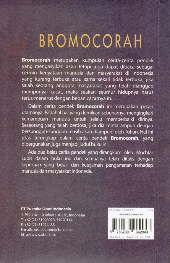 Dalam cerita pendek Bromocorah ini merupakan pesan utamanya. Padahal hal yang demikian sebenarnya mengingkari kemampuan manusia untuk selalu memperbaiki dirinya. Seseorang yang telah berdosa, jika dia minta ampun dengan bersungguh-sungguh masih akan diampuni oleh tuhan. Hal ini jelas terungkap dalam cerita pendek Bromocorah, yang dipergunakan juga menjadi judul buku ini.