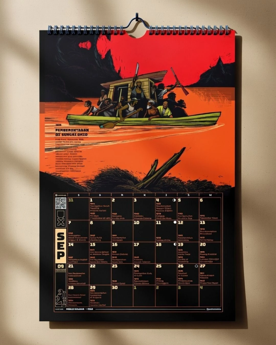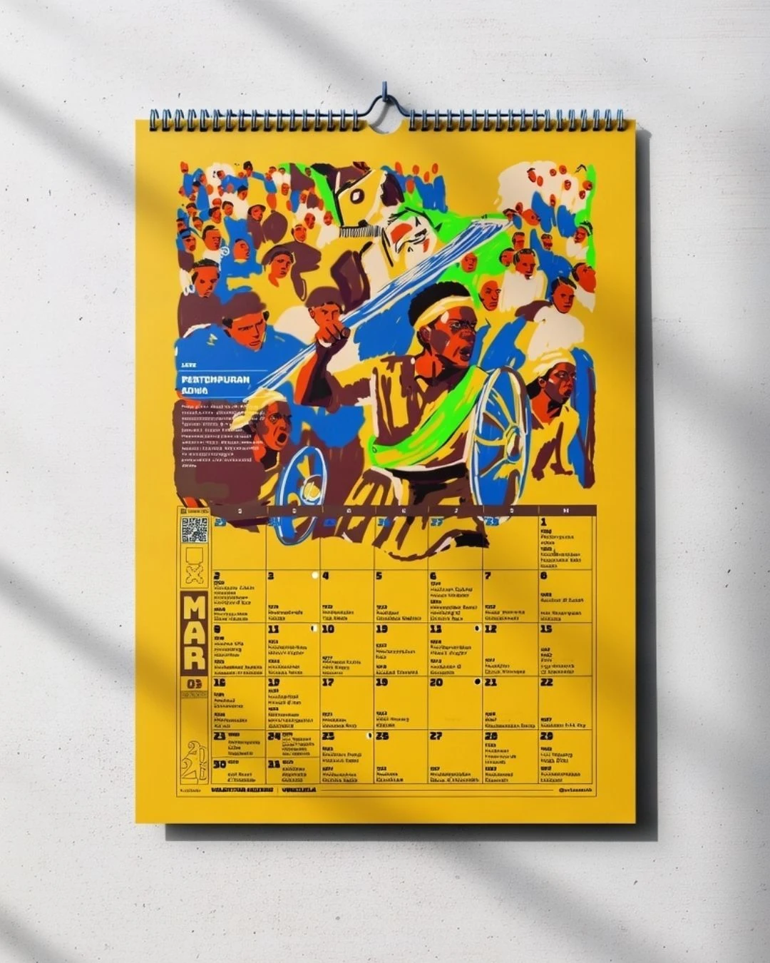 Menampilkan peristiwa sejarah penting lebih dari 500 entri secara total, kalender ini menyatukan episode-episode simbolis dari perjuangan rakyat yang coba diputarbalikkan atau dilupakan oleh historiografi resmi.